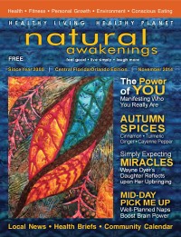 Natural Awakenings practices environmental sustainability by using postconsumer recycled paper and soy-based ink on uncoated stock. This choice avoids the toxic chemicals and high energy costs of producing shiny, coated paper that is hard to recycle.