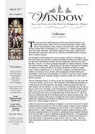 feast day which falls this month. March 1 is also Ash Wednesday this year; next month The Win- dow will give details of services and events lead- ing up to Easter, as well as details of the Annual District and Parochial Church Meetings.