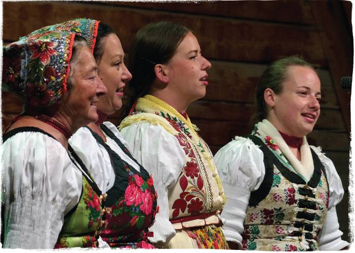 I asked what they consider the identifying sounds of Slovak music – apart, of course, from the voice. “We could put it in two categories: solo instruments and bands. Solo instruments – those are mostly from the highland regions: various horns, many sorts of pipes such as fujara, and bagpipes. That’s in the older sort of music; the newer would be stringed instruments – fiddle bands, dulcimers. And, newer than that, brass. And the instrumental music tends to be newer than the songs. In the old times not so many people had instruments – they sang and danced and used drums.”