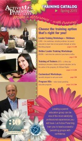 LTW Cancellation Policy: If you cancel at least 15 business days prior to the LTW, all but $25 will be refunded. Otherwise, a credit will be issued for future Active Parenting training or materials (less a $25 cancellation fee). Dates and locations are subject to change. Active Parenting Publishers cannot be held responsible for non-refundable travel reservations.