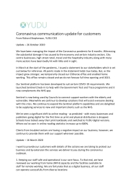 8. Outlook: The crisis management division is expected to grow strongly during this period as the YUDU Sentinel platform is ideally suited to help businesses and communities communicate during an emergency. The Publishing Division expects physical distribution of publications to be disrupted and therefore a renewed interest in digital distribution. However, we expect some publishing clients who rely on events for much of their revenue to be adversely affected.