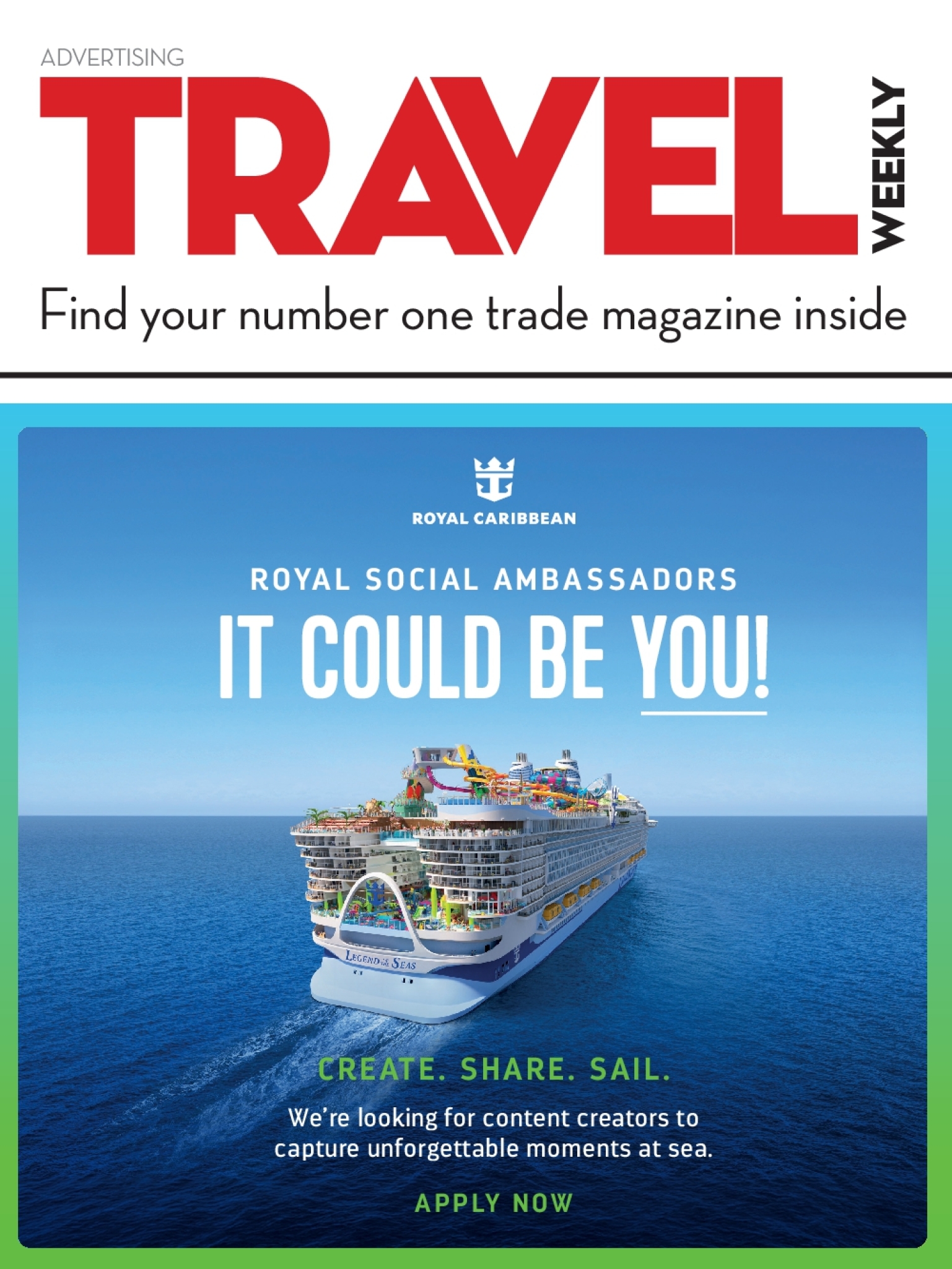 Find your number one trade magazine inside ROYAL SOCIAL AMBASSADORS IT COULD BE YOU! CREATE. SHARE. SAIL.