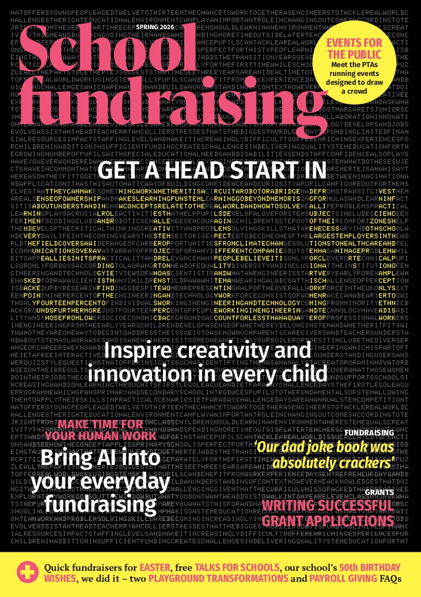 Quick fundraisers for EASTER, free TALKS FOR SCHOOLS, our school’s 50th BIRTHDAY WISHES, we did it – two PLAYGROUND TRANSFORMATIONS and PAYROLL GIVING FAQs